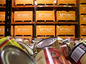 The Community Action Food Bank is the second largest food bank in Utah and is the only food bank serving Utah, Wasatch and Summit counties.[5] It is often confused with the Utah Food Bank, which is a separate organization that primarily serves Salt Lake and Tooele counties but also assists food pantries in other counties in the state of Utah.[6] Community Action Food Bank annually distributes more than 2.3 million pounds of food to thousands of families and many local service organizations. Community Action employees and volunteers work to alleviate hunger by providing eligible families with food boxes, counseling, budgeting and referrals. They collect and distribute donated food and hygiene items on a regular basis to more than thirty other agencies, including local pantries, community agencies, churches and senior centers.[7] The Community Action Food Bank also operates five food pantries located in Utah communities Payson, American Fork, Heber, Kamas, and Coalville. An additional satellite office in Park City relies on Community Action for food and other donated items.[8]