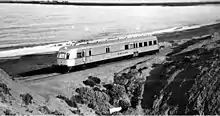 The single-unit railbus (numbered "52") was about to reach Comodoro Rivadavia when it took a sharp curve, known in the neighborhood as the "sulfa", where the sheds of the Sagosa company stands nowadays. The high speed (80 kilometres per hour (50 mph)) of the train, the exceeded number of passengers (there were 100 people when the maximum capacity of the coaches were 48), and the 750 mm narrow gauge's insability caused the railcar to be derailed, falling from a 40-metre (130 ft) hillside in a zone known as playa 99, a beach resort in Punta Piedras.[2][3] The coach was completely destroyed almost completely while its passengers were expelled from it or were smashed by the train.[2]