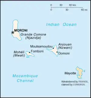 - André Bourde (May 1965). "The Comoro Islands: Problems of a Microcosm". The Journal of Modern African Studies. 3 (1): 91–102. doi:10.1017/S0022278X00004924. S2CID 154728193.