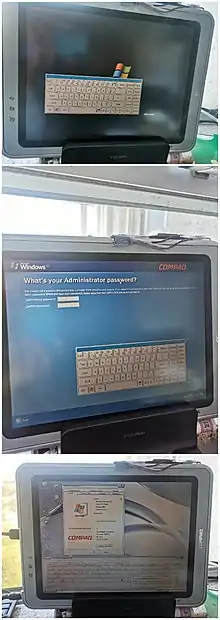 The TC1000 is a 10.4" laplet designed by Compaq, before it was purchased by HP. It used the Transmeta Crusoe processor. Unlike many other tablet PCs of its time (which can only operate either in a traditional laptop configuration, or with the keyboard folded behind the screen), the display is fully detachable from the keyboard. The product was developed and manufactured using ODM model from LG Electronics, Inc. of South Korea.