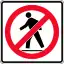 - Almost all prohibitory signs use a red circle with a slash. Restrictive signs typically use a red circle, as in Europe. Some may be seated on a rectangular white background.