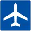 - White-on-blue signs are sometimes used at airports and for rest areas.