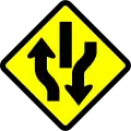 - Argentina employs European-style red-bordered triangular warning signs in certain instances where extra attention is required. The Philippines, Taiwan and Vietnam uses this style for most warning signs, though some highways like the Subic–Clark–Tarlac Expressway and the Manila–Cavite Expressway use MUTCD-style yellow diamond-shaped warning signs.