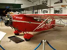 The prototype Swift (registered G-AARX) first flew at Hooton Park in January 1930.[1] The aircraft was a small single-seat, braced high-wing monoplane constructed of fabric-covered spruce wood frames.[2] The first Swift was powered by a 40 hp (30 kW) ABC Scorpion piston engine. After successful tests, seven more aircraft were built in 1930, powered by a 50 hp Salmson A.D.9 radial engine. Trials with Pobjoy P radial engine for use in air racing resulted in all the subsequent aircraft being powered by the Pobjoy R. The last three factory-built aircraft (sometimes called the Gipsy Swift) were fitted with de Havilland Gipsy engines – two with 120 hp (89 kW) Gipsy Major III, and one with a 130 hp (97 kW) Gipsy Major. In 1931, Arthur Butler flew G-ABRE to Australia in nine days.[3] After touring the Eastern States, the Swift had covered twenty three thousand miles. One of the Gipsy Swifts, owned by the then-Prince of Wales and future King Edward VIII, won second place in the 1932 King's Cup Race while being flown by his personal pilot.[4] Postwar, surviving Swifts continued to compete successfully in UK air races into the mid-1950s.