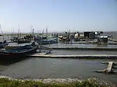 - Port of Carrasqueira (Portuguese: Porto de pesca palafítico da Carrasqueira),[7] located within the Sado Estuary Nature Reserve (Portuguese: Reseva Natural do Estuário do Sado) the artesnal fishing port, the Port of Carrasqueira is known for the wooden dock, built on stilts (a municipal heritage due to its method of construction, extension and important contribution to the local landscape), along with the Concheiros do Paleolítico.[8]