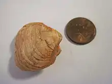Composita is an extinct brachiopod genus that lived from the Late Devonian to the Late Permian.[1] Composita had a cosmopolitan global distribution, having lived on every continent except Antarctica.[1][2] Composita had a smooth shell with a more or less distinct fold and sulcus and a round opening for the pedicle on the pedicle valve. Composita is included in the family Athyrididae (Order Athyridida) and placed in the subfamily Spirigerellinae.