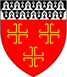 - The arms depicted are Zouche of Haryngworth (with canton ermine), thus for William la Zouche, 5th Baron Zouche (c.1402-1462)