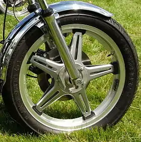 ![]() First generation Comstar front wheel fitted to a 1978 Honda Hawk CB400A | |
