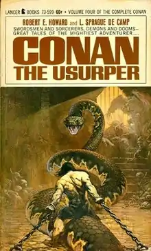 Conan the Usurper is a 1967 collection of four fantasy short stories by American writer Robert E. Howard and L. Sprague de Camp, featuring Howard's sword and sorcery hero Conan the Barbarian. Most of the stories originally appeared in the fantasy magazine Weird Tales in the 1930s. The book has been reprinted a number of times since by various publishers, and has also been translated into German, Spanish, Italian, Swedish and Dutch.