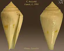 | Apertural and abapertural views of shell of Conasprella bozzettii (Lauer, J., 1991) | |