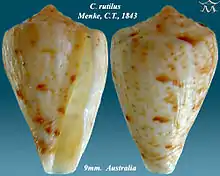 - "Parviconus rutilus". Gastropods.com. Retrieved 15 January 2019.