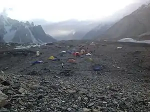Concordia (Balti: ཅོནྕོརདིཨ།; Urdu: کونکورڈیا) is the confluence of the Baltoro Glacier and the Godwin-Austen Glacier in the Karakoram mountain range of Pakistan. It is located in the Baltistan region of Pakistan, at 4,691 metres (15,390 ft) above sea level. The area is often used as a base camp for mountaineering expeditions on K2 and other nearby peaks, and is also a popular destination for trekkers and backpackers.