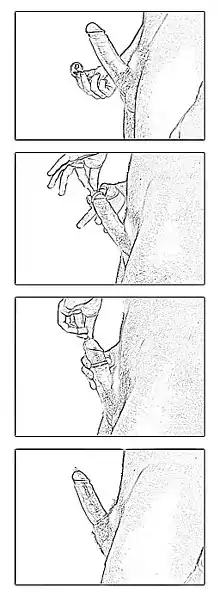 Another possible cause of condom failure is sabotage. One motive is to have a child against a partner's wishes or consent.[48] Some commercial sex workers from Nigeria reported clients sabotaging condoms in retaliation for being coerced into condom use.[49] Using a fine needle to make several pinholes at the tip of the condom is believed to significantly impact on their effectiveness.[12]: 306–307 [28] Cases of such condom sabotage have occurred.[50]