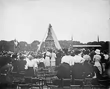 As the date for the cornerstone-laying ceremony approached, more than 10,000 people were expected to attend the event.[115][116] Plans for the cornerstone ceremony appeared to be disrupted when the 1912 presidential election was held just a week before the event and Taft lost the election to Woodrow Wilson. It was widely expected that Taft would cancel his speech, but Taft reaffirmed his commitment to speak at the cornerstone-laying event. It was considered an important speech, since it was his first speaking engagement since losing the election.[116]