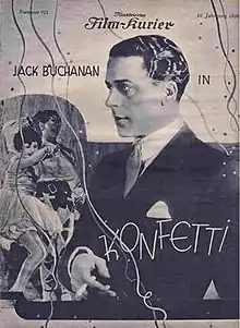 Confetti is a 1927 British silent drama film directed by Graham Cutts and starring Jack Buchanan, Annette Benson and Sydney Fairbrother.[2] It had its trade show in December 1927.[3] The film was shot at Gainsborough Pictures' Islington studios.