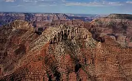 Confucius Temple is a 7,081-foot-elevation (2,158-meter) summit located in the Grand Canyon, in Coconino County of northern Arizona, US.[1] It is situated 1.5 mile southeast of Point Sublime, four miles west-northwest of Shiva Temple, and three miles northwest of Tower of Ra, where it rises over 3,200 feet (980 meters) above Hindu Amphitheater. Confucius Temple is named for Confucius (551–479 BC), the Chinese philosopher.[3] This name was applied by Clarence Dutton, who began the tradition of naming geographical features in the Grand Canyon after mythological deities.[4] Confucius Temple is one of the Twin Buttes in the Grand Canyon, the other being Mencius Temple (7,001 ft), which is named for Mencius, considered the second-most famous sage, after only Confucius himself.[1] This mountain's name was officially adopted in 1906 by the U.S. Board on Geographic Names.[1] According to the Köppen climate classification system, Confucius Temple has a Cold semi-arid climate.[5]