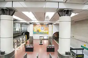 Congreso de Tucumán is a station on Line D of the Buenos Aires Underground and is the current terminus.[1] The station was opened on 27 April 2000 as the western terminus of the extension of the line from Juramento.[2] It is located at the intersection of Cabildo and Congreso avenues. As of June 2015, the station connects to the Metrobus Cabildo bus rapid transit line that was opened that year. New underground passageways and station entrances were made for the station to provide easy transfer to the Metrobus line.[3]