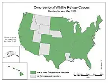 The Congressional Wildlife Refuge Caucus (CWRC) is a large bi-partisan Congressional Member Organization in the U.S. House of Representatives formed to support the National Wildlife Refuge System through legislation, funding, and education.