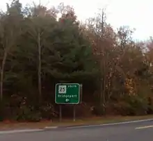 Route 25 was designated along the old turnpike route in the 1932 state highway renumbering.[1] When originally designated in 1932, Route 25 continued well beyond Brookfield, following Route 133 and Route 67 to New Milford (via Bridgewater), then turning northeast along modern Route 202 before terminating at Route 8 in Torrington. In April 1943, a portion of Routes 25 and 133 swapped alignments. Route 25 now connected to U.S. Route 7 in Brookfield and overlapped it to New Milford, bypassing Bridgewater.[3] In 1963, Route 25 was extended further eastward to Route 44 in Canton after the relocation of Route 4. In 1974, U.S. Route 202 was relocated and the portion of Route 25 from Brookfield to Canton was taken over by US 202. Route 25 was truncated to its present terminus in Brookfield at this time.[4]