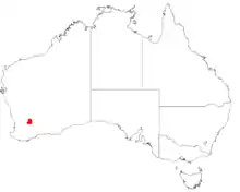 It is found east of Merredin, Western Australia, on yellow sandplain in a small region of heath.[4]
