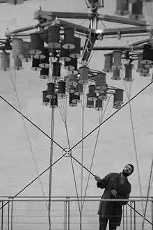 ![]() Shawcross posing with his installation The Nervous System (Inverted) at the Mudam, Luxembourg | |