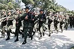 Azerbaijan has mandatory military service in the Azerbaijani Armed Forces for all able-bodied male civilians. Conscription is at the age of 18. According to Article 76.2 of the Constitution of Azerbaijan, if a citizen's conscience prevents them from serving, alternative service other than military service is not available. Women between the ages of 19 and 40 are also accepted into the armed forces on a voluntary basis.[1] There are four call-up periods per year. The length of military service is 18 months, the compulsory service period is reduced from 18 to 12 months for university graduates.[2]