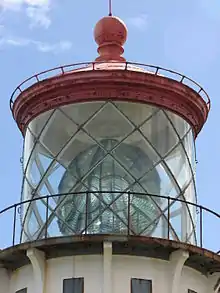 The Fresnel lens was introduced for use in lighthouses around 1823. Generally, keeping the lens historically preserved, rather than restoration to period, will reduce stress on the lens and keep some of the lens's story intact (e.g. chips of the glass that are documented in historical light keeper's notes).[13] It is important to consult a conservator before attempting any conservation on a lens. The glass that was used to make the lens is often brittle and may chip easily. Lens glass etches easily from contact with oils or dust.[14]