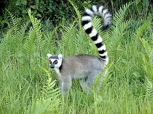 Lemurs have been characterized as "Madagascar's flagship mammal species" by Conservation International.[2] In the absence of monkeys and other competitors, these primates have adapted to a wide range of habitats and diversified into numerous species. As of 2012, there were officially 103 species and subspecies of lemur,[10] 39 of which were described by zoologists between 2000 and 2008.[11] They are almost all classified as rare, vulnerable, or endangered. Since the arrival of humans on Madagascar, at least 17 species of lemur have become extinct; all of them were larger than the surviving lemur species.[12]