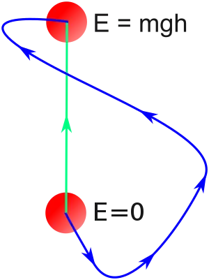In physics, a conservative force is a force with the property that the total work done in moving a particle between two points is independent of the path taken.[1] Equivalently, if a particle travels in a closed loop, the total work done (the sum of the force acting along the path multiplied by the displacement) by a conservative force is zero.[2]