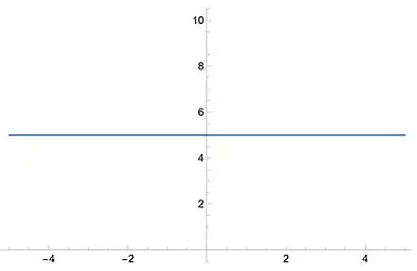 A constant may be used to define a constant function that ignores its arguments and always gives the same value.[4] A constant function of a single variable, such as , has a graph of a horizontal line parallel to the x-axis.[5] Such a function always takes the same value (in this case 5), because the variable does not appear in the expression defining the function.