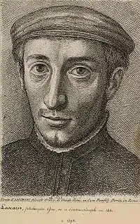Among his numerous pupils in Milan was Giorgio Valla and, in Messina, Pietro Bembo, Angelo Gabrieli, Urbano Valeriani, Cola Bruno, Bernardino Rizzo, Francesco Faraone, Antonio Maurolico (the father of Francesco Maurolico), Francesco Giannelli and Cristóbal Escobar. Lascaris bequeathed his library of valuable manuscripts of philosophy, science and magic to the Senate of Messina; the collection, after the Messina revolt (1674-1678), was confiscated and carried to Spain and is now in the Spanish National Library in Madrid.[1] In the second half of the sixteenth century his tomb in Messina was totally destroyed during the repression of the Counter-Reformation.[2] He was a typical Renaissance humanist, with polymathic interests, but especially in Neoplatonism combined with Pythagoreanism (which was dear to many contemporary Byzantine scholars).[3] Through his pupils Antonio Maurolico, Francesco Faraone and Giacomo Notese-Genovese his knowledge reached the scientist Francesco Maurolico.[4]