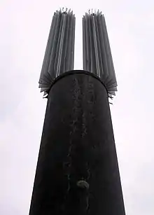 The Valdez Marine Terminal, the southern end of the pipeline, was planned for a site across the Port Valdez fjord from Valdez proper. Initial studies predicted bedrock would be six feet below the surface of the ground, but when excavation began, it was discovered that bedrock was actually sixty feet down, requiring the removal of 15,000,000 cubic yards (11,000,000 m3) of overburden. The terminal itself was designed to be built with four tanker berths and space for a fifth, should it become necessary. Holding tanks were planned that had a capacity equal to that of the pipeline, allowing the whole pipeline to be emptied if required.[15] As required by the Pipeline Authorization Act, a ballast-water filtration system had to be designed as well. This system removes oil from tankers' ballast water so it is not released into Prince William Sound—something fishermen feared when the pipeline was proposed.[16]