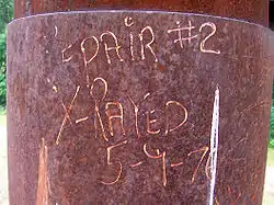 At the end of 1975, Alyeska terminated Ketchbaw's contract and took responsibility for analyzing weld X-rays itself.[89] The controversy continued, however, as Kelley's lawsuit moved forward, a Ketchbaw manager was found dead of cyanide poisoning, and photographs of welds were stolen from a pump station construction camp.[90] Alyeska began a review of all 30,800 welds that had been done in 1975, and submitted its report to the Interior Department in April 1976.[90] In May, it submitted its technical analysis and a report on repair work under way. The review produced a list of 3,955 questionable welds—10 percent of 1975's work.[90]