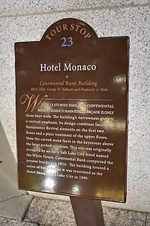 The Continental Bank Building (now known as the Hotel Monaco) is a historic 13-story commercial building in downtown Salt Lake City, Utah, United States, that is listed on the National Register of Historic Places (NRHP).