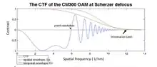 The contrast transfer function (CTF) mathematically describes how aberrations in a transmission electron microscope (TEM) modify the image of a sample.[1][2][3][4] This contrast transfer function (CTF) sets the resolution of high-resolution transmission electron microscopy (HRTEM), also known as phase contrast TEM.