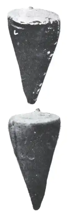 | Apertural (upper) and abapertural view of the fossil shell of Conus abruptus from its original description. | |