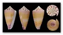 | Apertural and abapertural views of shell of Conus daucus Hwass in Bruguière, J.G., 1792 | |