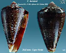 - Conus kersteni Tenorio, Afonso, & Rolán, 2008. Retrieved through: World Register of Marine Species on 27 March 2010.