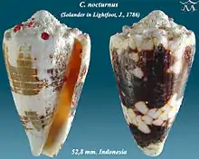 | Apertural and abapertural views of shell of Conus nocturnus (Solander in Lightfoot, J., 1786) | |