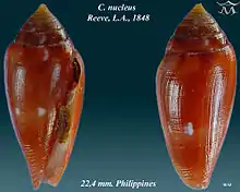 Conus nucleus is a species of sea snail, a marine gastropod mollusk in the family Conidae, the cone snails and their allies.[1]