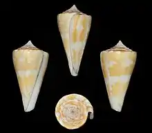 | Shell and protoconch of Conus xanthicus (holotype at the Smithsonian Institution) | |