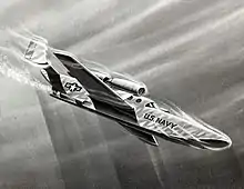 Convair's design was for a narrow-hulled flying boat (rather than a floatplane).[3] The craft was to be powered by three turbojets, carry a crew of two, and carry a payload of 500 to 1,500 pounds (227 to 680 kilograms). The craft was to have used ballast tanks to dive and surface, much as a conventional submarine does,[1] located in the wings and fuselage.[4] The weaponry was to be torpedoes or mines.[2] For undersea operations, the turbojets would be sealed water-tight, and underwater propulsion would be provided by a battery-powered electric motor driving a propeller.[2]