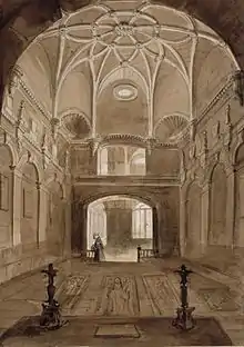 From the beginning of the 16th century, the family of Gómez Manrique de Mendoza wanted to gain access to the patronage of this chapel, although they were strongly opposed by the friars. Even so, in 1613 it is known that Carlos Manrique de Mendoza, Count of Castro, buried in this chapel the remains of his parents that he had ordered to be brought from Castrogeriz in Burgos.[23] However, either they did not obtain the patronage as they would have wished or they shared it with the merchant Alonso de Portillo who in 1543 hired the plasterers and masons Gaspar de Mendoza and Diego de Segovia for this purpose:
