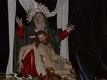 - It consists of a bench with paintings of St. John the Baptist, St. Francis, St. Bernardino and the Magdalena. The main box is occupied by the high relief of the Pietà (known as the Fifth Anguish), work of Gregorio Fernandez. In the attic is the Imposición de la casulla a San Ildefonso, by the painter Diego Valentín Díaz.