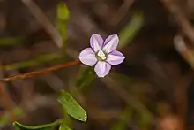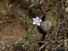 Convolvulus simulans is a species of annual plant in the morning glory family known as the small-flowered morning-glory and small-flowered bindweed.[3] It is an inconspicuous vining plant that is characterized by tiny pale pink or pale blue bell-shaped flowers.[4] It is typically restricted to clay and serpentine substrates in annual grassland, coastal sage scrub and chaparral habitats.[5] This species is native to Arizona,[6] California,[5] and Baja California.[3] Some taxonomies place this species under Convolvulus equitans.[2]