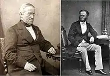 The telegraph arose from a collaboration between William Fothergill Cooke and Charles Wheatstone, best known to schoolchildren from the eponymous Wheatstone bridge. This was not a happy collaboration due to the differing objectives of the two men. Cooke was an inventor and entrepreneur who wished to patent and commercially exploit his inventions. Wheatstone, on the other hand, was an academic with no interest in commercial ventures. He intended to publish his results and allow others to freely make use of them.[1] This difference in outlook eventually led to a bitter dispute between the two men over claims to priority for the invention. Their differences were taken to arbitration with Marc Isambard Brunel acting for Cooke and John Frederic Daniell acting for Wheatstone. Cooke eventually bought out Wheatstone's interest in exchange for royalties.[2]