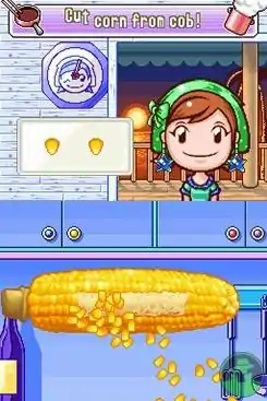 As in the original The Cooking Mama, players in The Cooking Mama 2: Dinner with Friends, prepare various culinary dishes using the Nintendo DS's touch screen. Following the on-screen instructions of the titular "Mama", the player uses the stylus to perform various activities such as chopping vegetables or mixing ingredients. Each of these tasks is performed by completing a short minigame, with a number of minigames strung together to form an entire dish from a catalog of 80 different recipes.