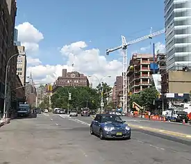 The Village Voice's headquarters are on the western side of the square, as are classroom buildings of Grace Church School and Kaplan, Inc.[13][14][15] The sleek, modern high-rise Cooper Square Hotel at 25 is one of the newest buildings on the square.[16][17]