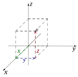 In three dimensions, three mutually orthogonal planes are chosen and the three coordinates of a point are the signed distances to each of the planes.[5] This can be generalized to create n coordinates for any point in n-dimensional Euclidean space.