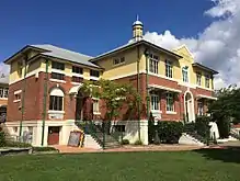 After the Forgan Smith Labor Government came to power in June 1932 with a campaign that advocated increased government spending to counter the effects of the Depression, the government embarked on a large public works building programme. This was designed to promote the employment of local skilled workers, the purchase of local building materials and the production of commodious, low maintenance buildings which would be a long-term asset to the state. This building programme included: government offices, schools and colleges; university buildings; court houses and police stations; hospitals and asylums; and gaols.[59][60][61][62][63][64][65][66] Many of the programmes have had lasting beneficial effects for the citizens of Queensland, including the construction of masonry brick school buildings across the state.[1]
